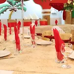 The rooms comprise a sitting area complete with an air conditioner, as well as a flat-screen TV with satellite channels. For your comfort, you will find a separate toilet and a shower, along with hair dryers and bathrobes.
